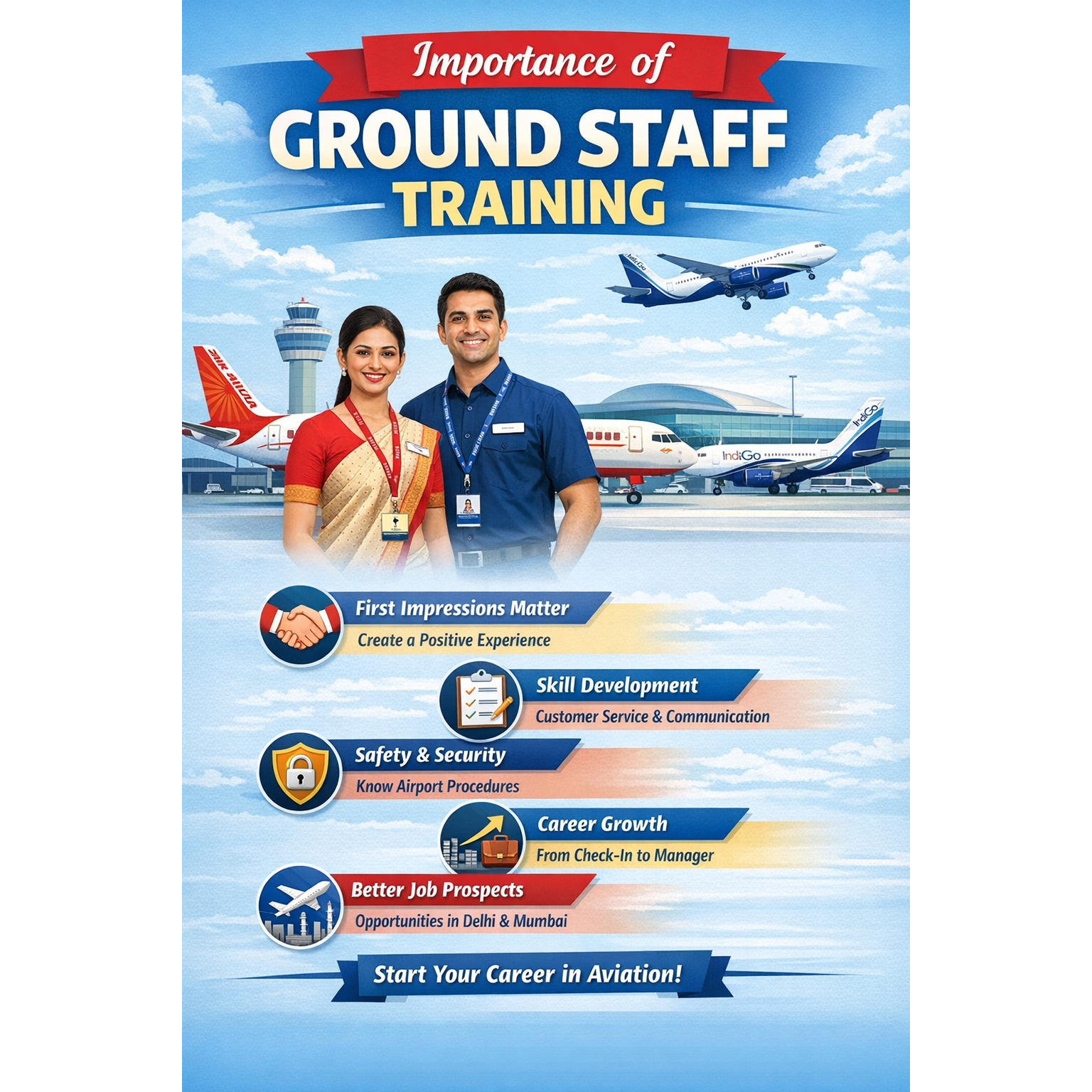 Best Aviation Academy in Noida (Barola) for Ground Staff Training. Ground staff are the people who manage airport operations on the ground—they make sure passengers, luggage, and flights run smoothly. What You Learn in Training Airport Operation, Check-in procedures, Boarding & gate handling, Flight coordination, Customer Service Skills, Communication with passengers, Handling complaints professionally, Greeting & assistance, Safety & Security, Airport safety rules, Emergency handling, Basic aviation security, Baggage Handling, Personality Development, Grooming & body language, Confidence building Interview preparation
