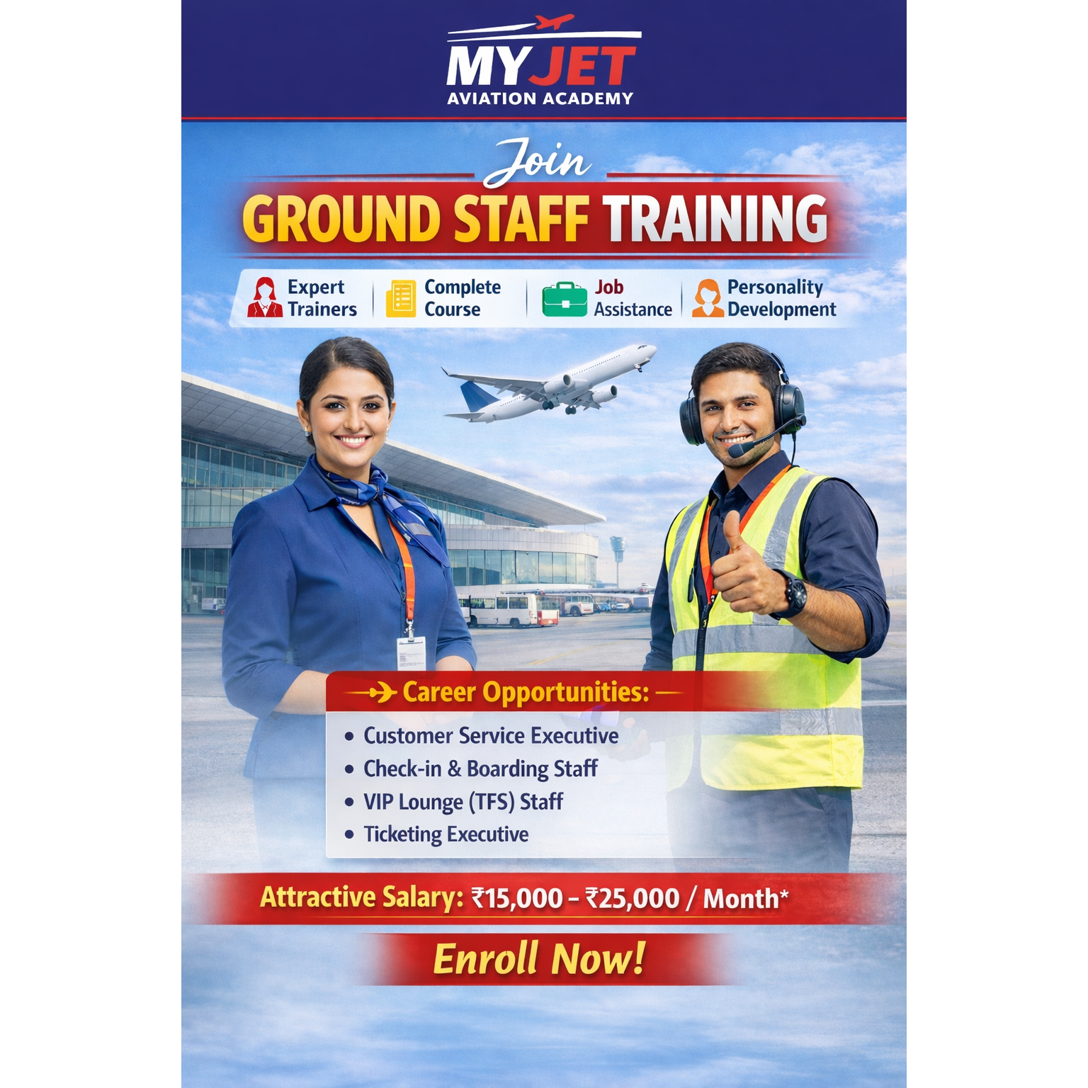 Best Aviation Academy in Noida (Barola) for Ground Staff Training. Ground staff training prepares you to work at the airport and handle all airport operations on the ground (not inside the aircraft). Ground staff are the backbone of airport operations — they make sure everything runs smoothly before and after a flight. Airlines like Air India, IndiGo, and airports like Indira Gandhi International Airport hire trained ground staff. You will about Airport Operations, Customer Service Skills Safety & Security