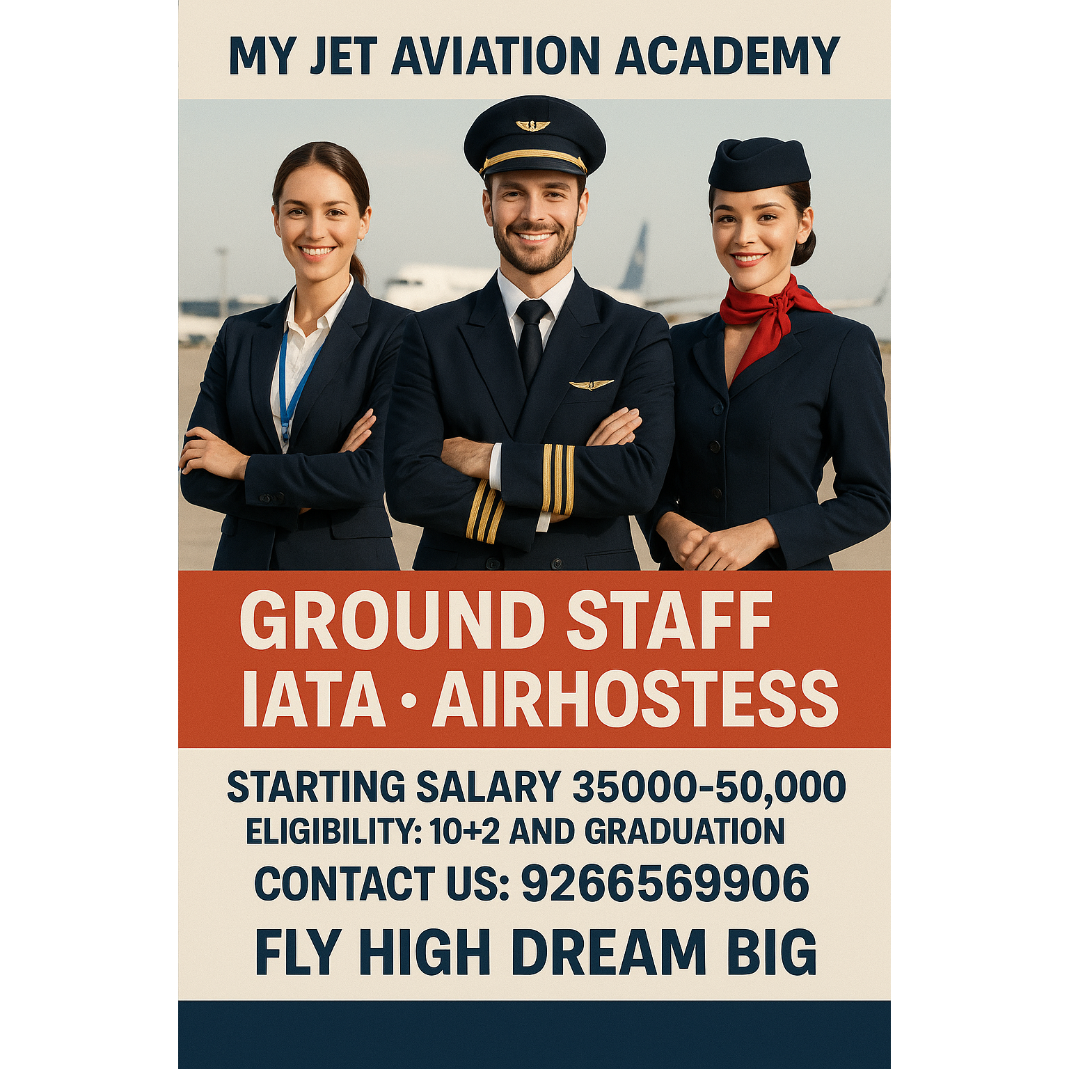 Best Aviation Academy in Noida for Ground Staff, IATA and Airhostess Training. Airhostess, Ground Staff & IATA Training for a Bright Career in Aviation! My Jet Aviation Academy – Noida Train with industry experts and get ready to fly high in your dream aviation career. Starting Salary: ₹35, 000 – ₹50, 000 Eligibility: 10+2 or Graduation (Any Stream)100% Job Placement Assistance Includes Galileo & Amadeus Ticketing System Training Contact Us: 9266569906